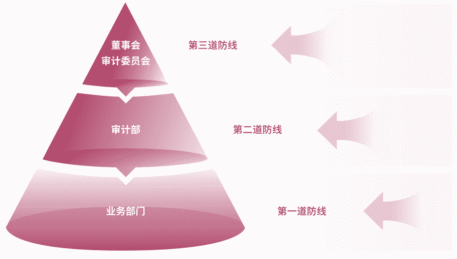 为有效防范贿赂与贪污等商业道德风险,,,公司建立了由“董事会审计委员会、、、、审计部、、、、业务部门”组成的三道防线,,全面落实公司商业道德合规工作,,并确保《商业道德行为准则》的有效执行。。公司审计部在董事会审计委员会的指导下定期评估、、、审查公司的合规运营情况及准则的履行情况,,并对公司及所有子公司开展商业道德行为审计。。。公司保证商业道德行为准则审计工作每三年覆盖公司及其所有控股子公司的全部业务范围。。
