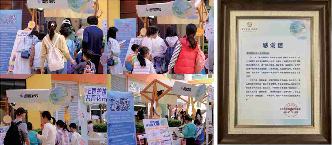 2024年11月,,公司受邀参加由深圳市互联网信息办公室、、深圳市妇女联合会、、、、深圳市文明办联合主办的“E路护苗 共育花开”——2024深圳未成年人网络共护行动游园会,,,,并作为企业代表发言,,,介绍未成年人保护体系及相关公益实践,,,获得深圳市网信办的认可。。。。