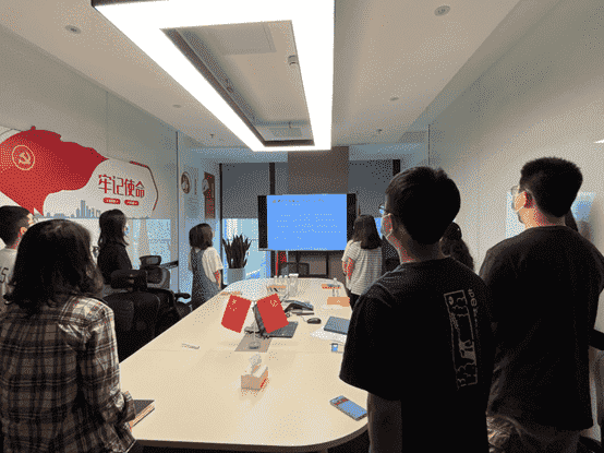 而后,,,全体党员一起重新学习了解了目前的入党流程要求,,各支部也将在后续工作中进一步发挥支部职能,,,,做好发展党员工作。。最后,,,,全体党员面向党旗,,重温入党誓词。。