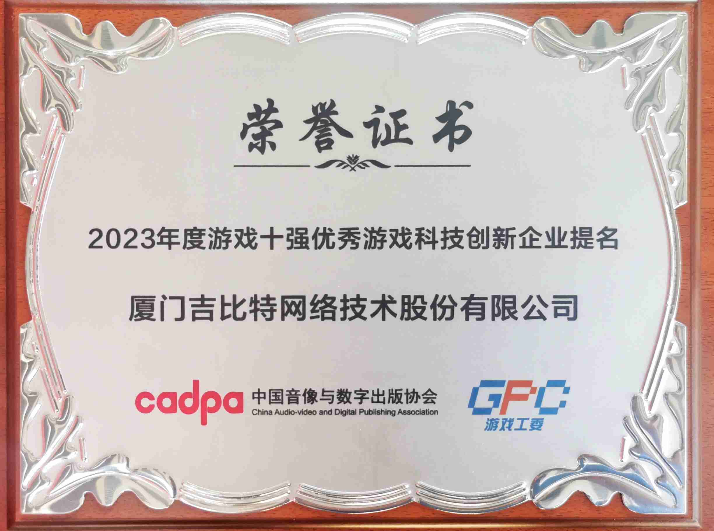 12月14日,,由中国音像与数字出版协会主办,,,,中国音数协游戏工委、、中国游戏产业研究院承办的“2023游戏十强”评选结果正式发布。。“游戏十强”在我国游戏产业界享有“中国第九艺术封神榜”美誉,,其评选秉承公开、、、公平、、公正的原则,,,因其代表性、、、影响力、、公信力被誉为中国游戏产业最高奖项。。。。继2022年度入围后,,,,J9.COM今年再次获得“优秀游戏科技创新企业”提名,,,,研发创新实力获得肯定。。。。